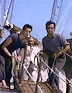 | JT's sailing experiences during the 50s and 60s became the basis for many nautical paintings and collages. Below are some pictures of the Verona, the barquentine on which JT sailed out of Marseille in 1960. At that time the Verona was owned by Mrs. Rogers of Rogers Diamond Mines in South Africa and captained by Captain Kemp. The crew of six (all but JT were from Majorca) handled 12,500 square feet of sail and the auxiliary engines of this 180 foot barquentine, a difficult task at best. The Verona was lost near Fernando Po in the Gulf of Guinea in 1967. |