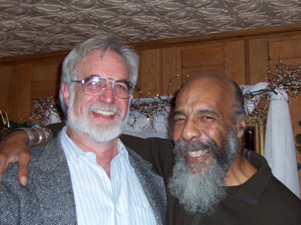 Richie Havens and JT laugh as they recall Richie's first motorcycle ride on JT's Norton Dominator 600 twin in 1964. Photo taken in 2006 |