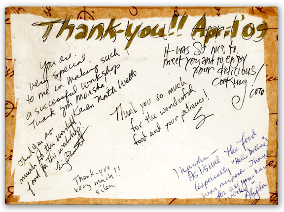 Below is a thank you note to Marsha from some participants in a 2009
